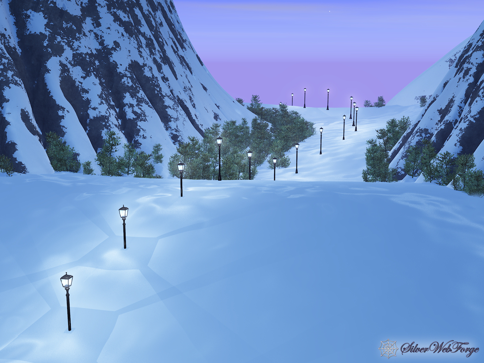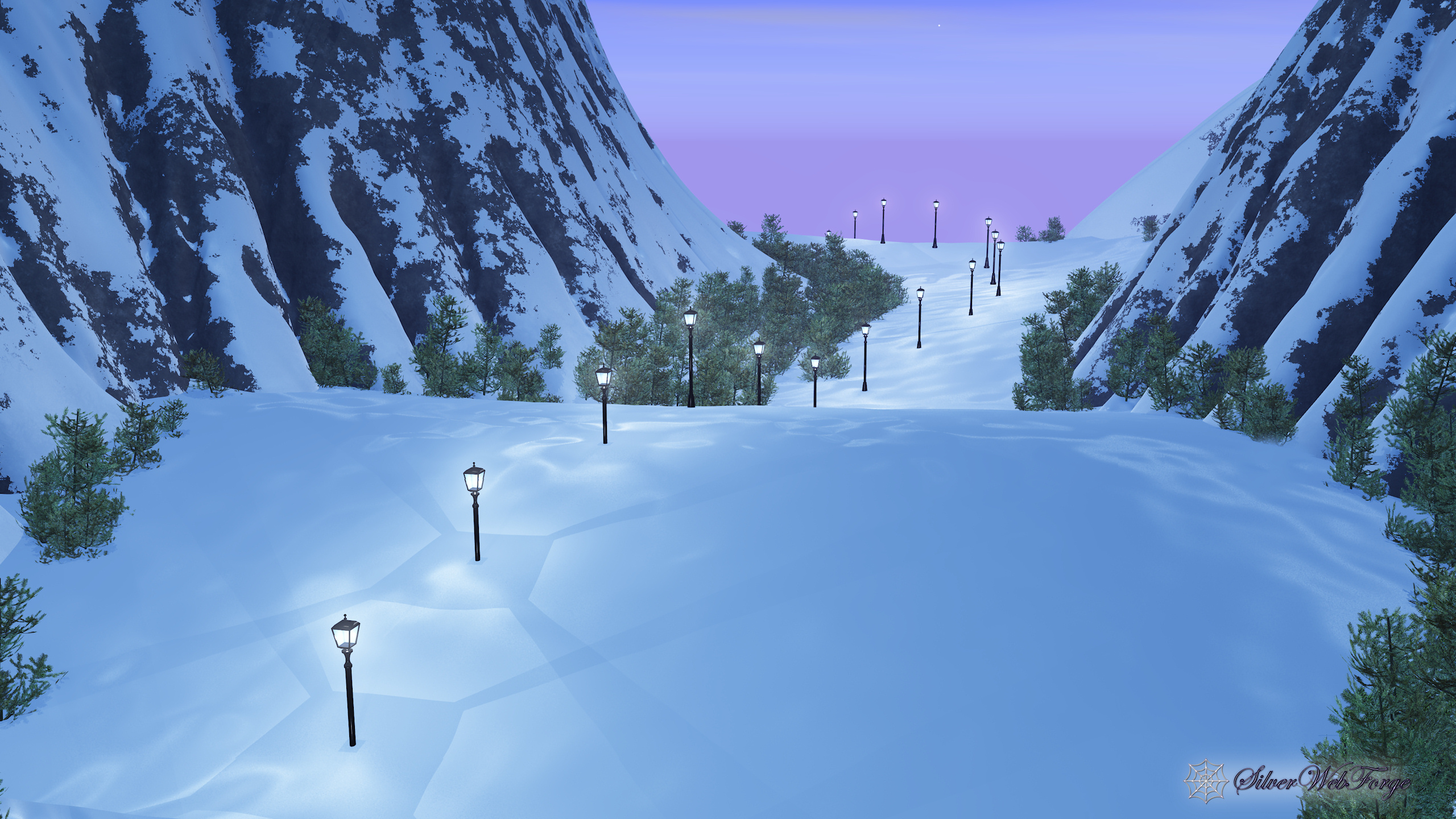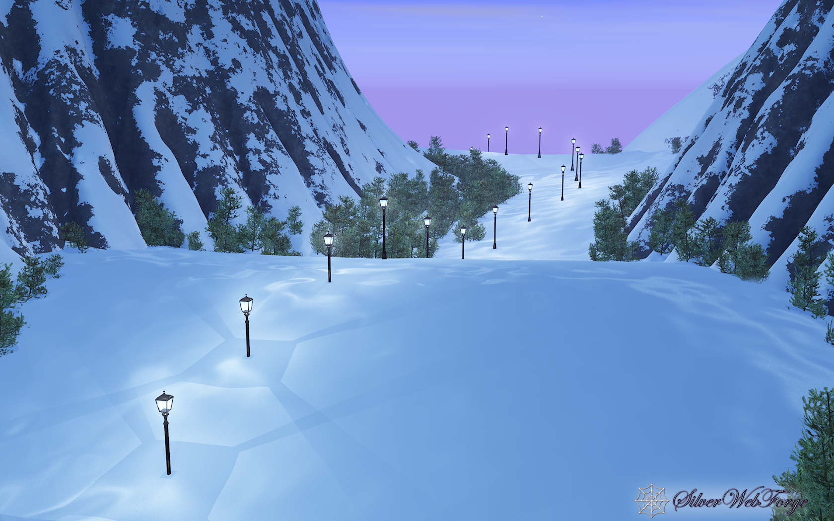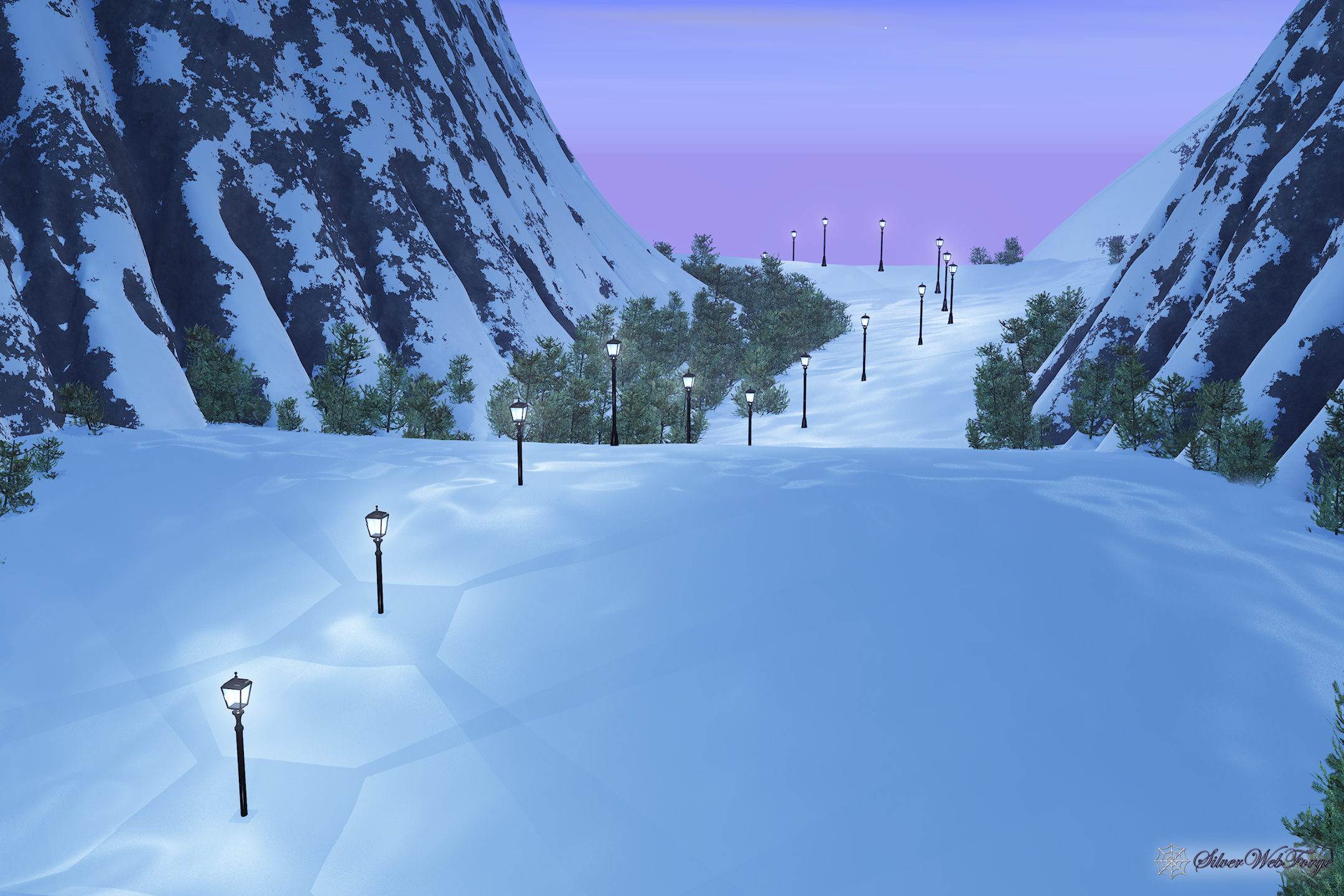This is a reverse of Pass of Light; I basically just turned the (virtual) camera around. It didn't take nearly as long to render without the glowing translucent castle in the background.