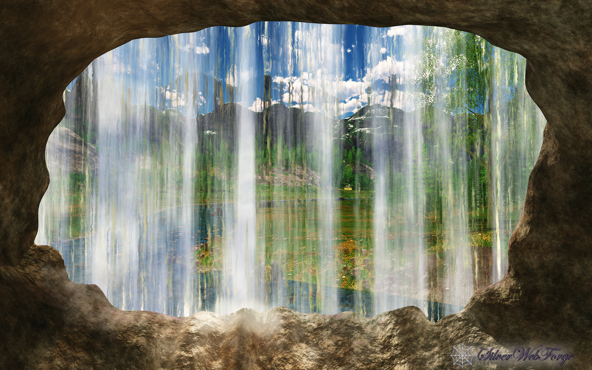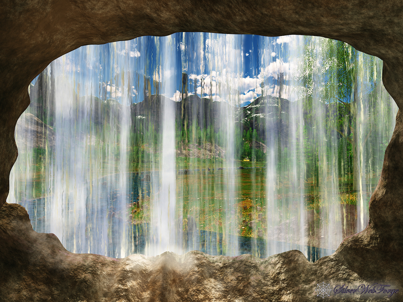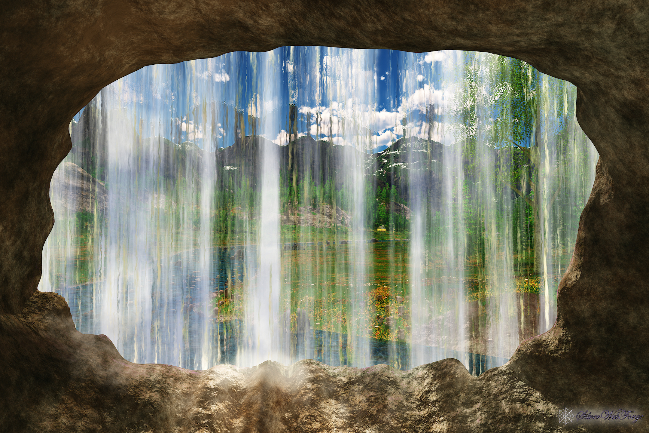 This is the reverse of my Cwm Waterfall image, this time from behind the waterfall (and it's late summer rather than spring). This perspective was inspired by J.R.R. Tolkien's description from the chapter "The Window on the West" in The Lord of the Rings.