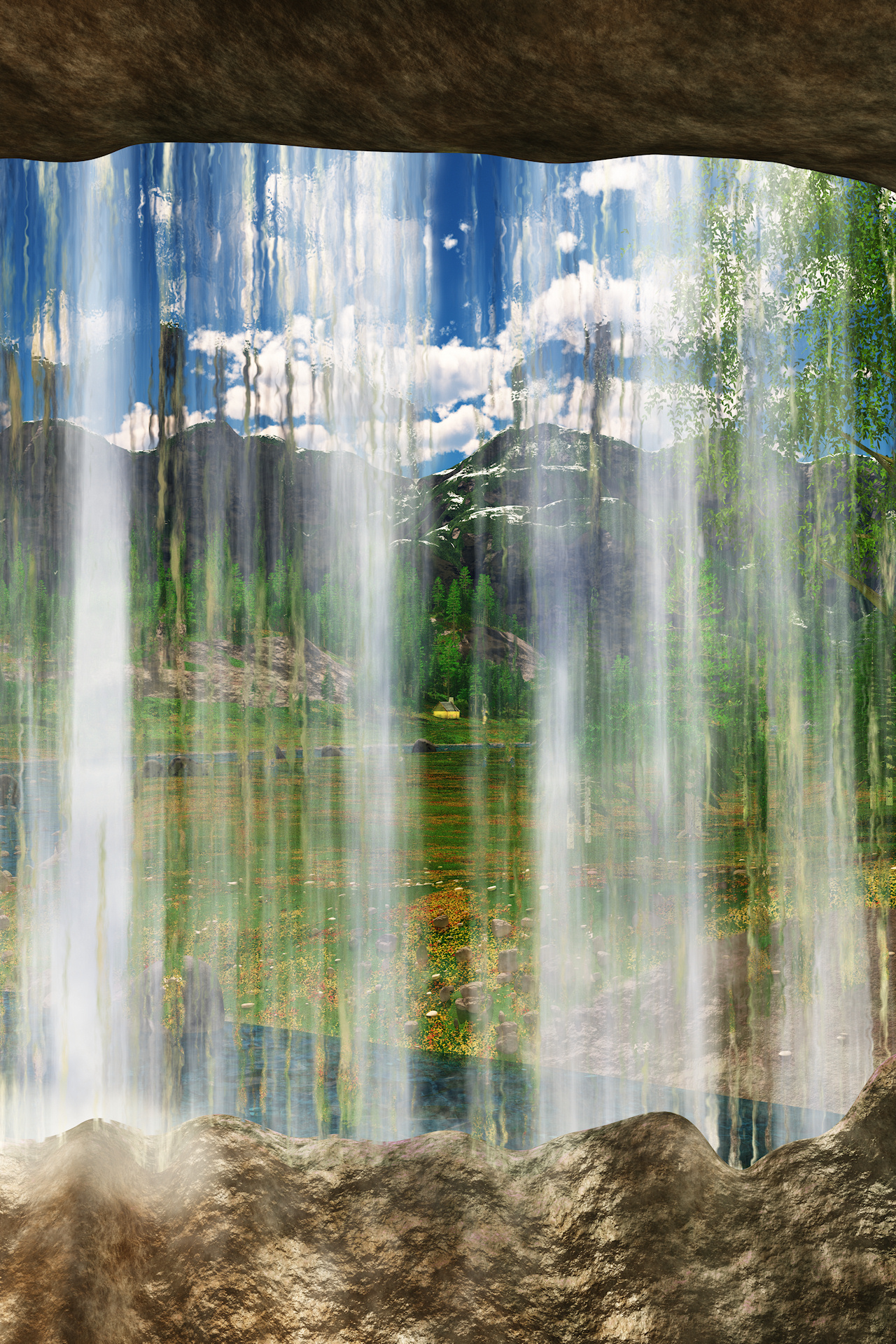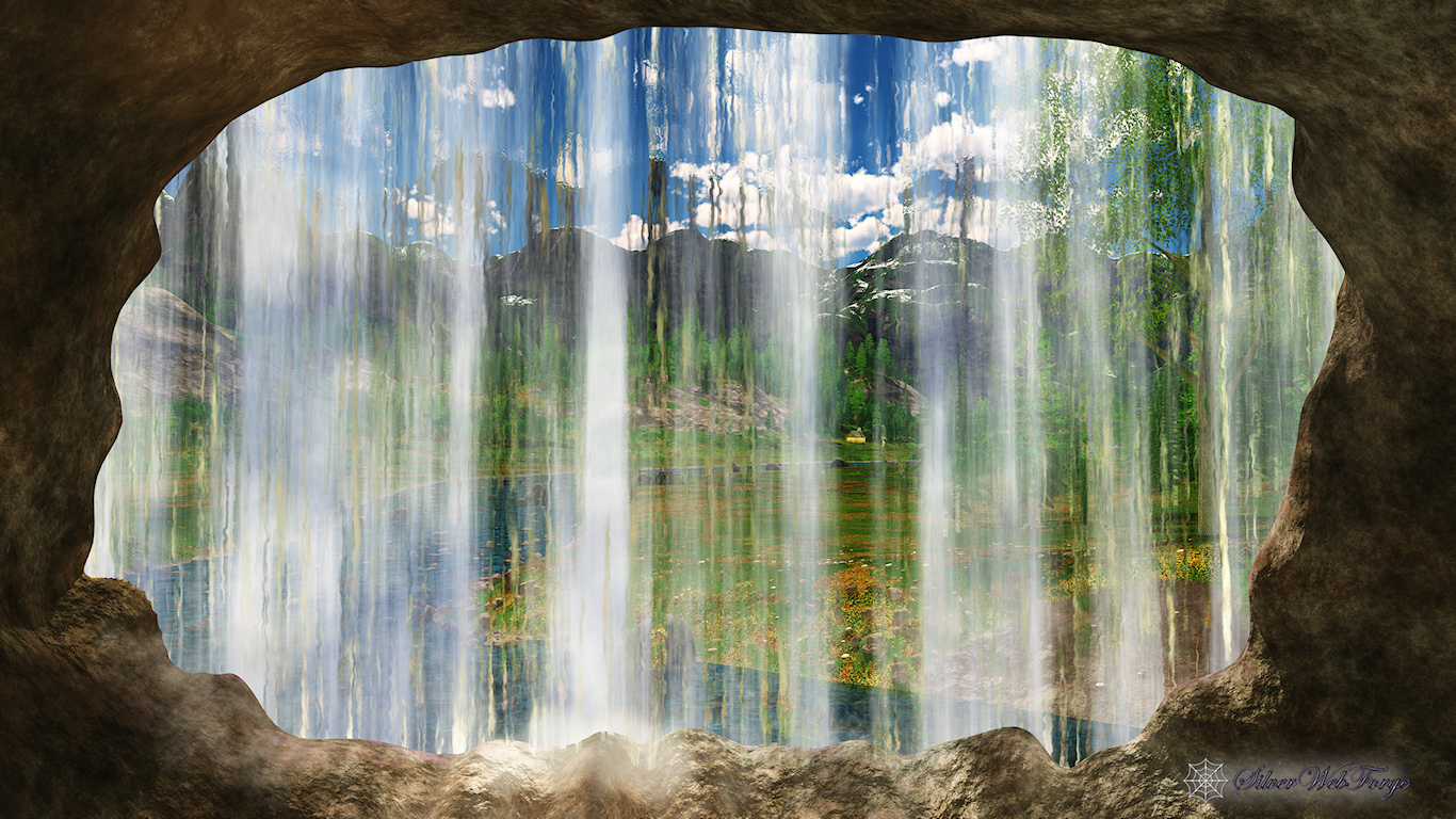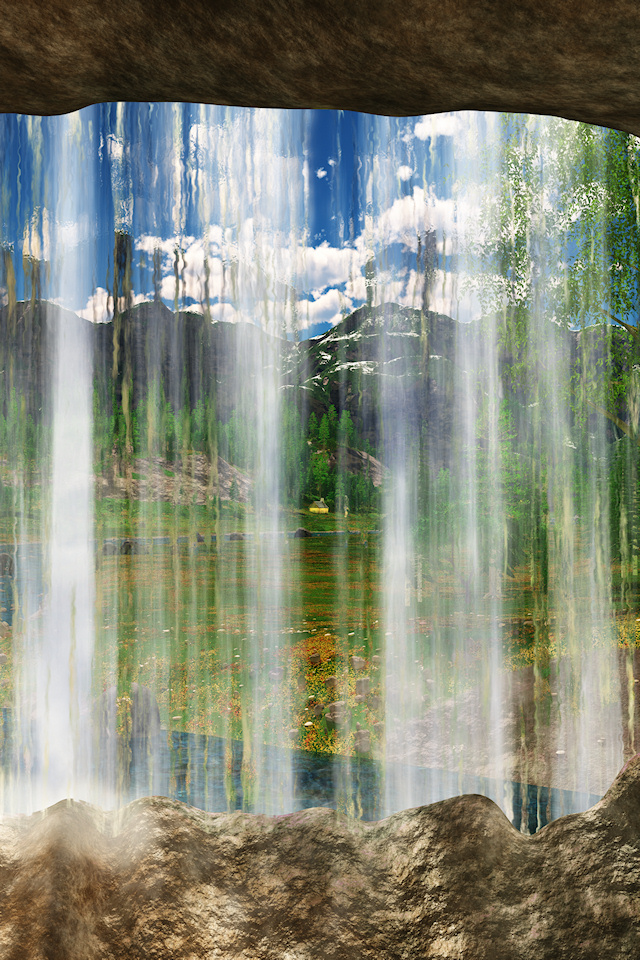 This is the reverse of my Cwm Waterfall image, this time from behind the waterfall (and it's late summer rather than spring). This perspective was inspired by J.R.R. Tolkien's description from the chapter "The Window on the West" in The Lord of the Rings.