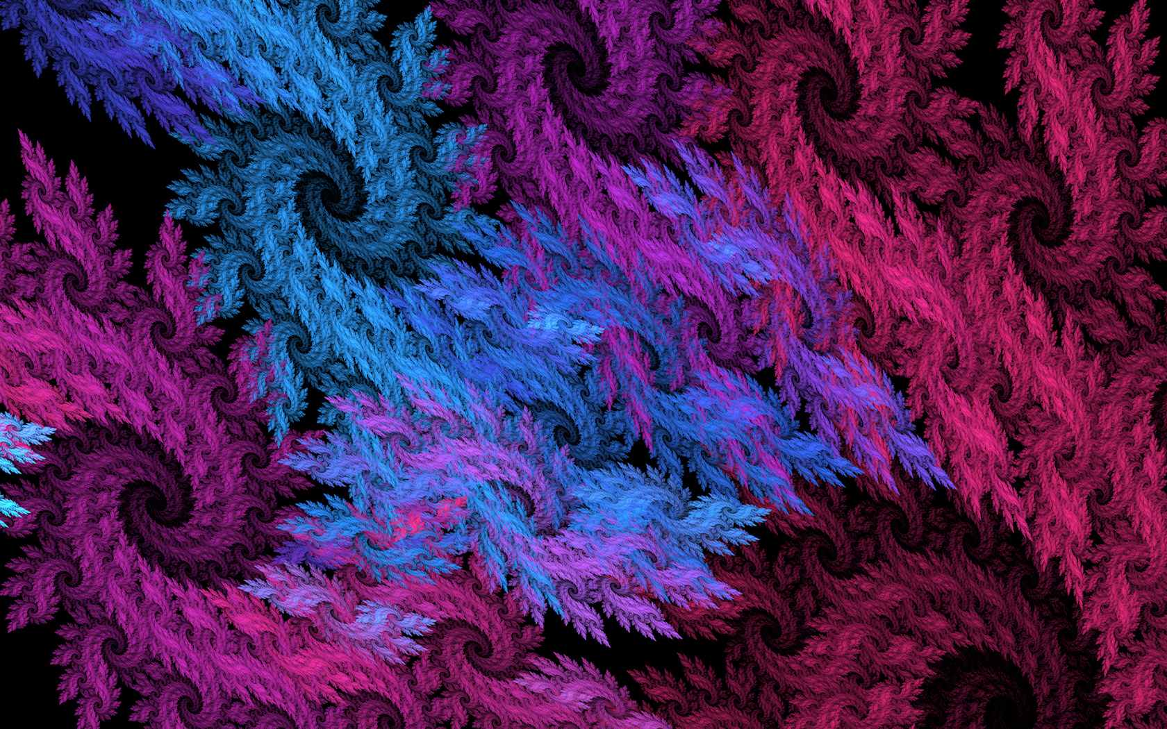 It's easy to see the repeating fractal pattern in this design. However close you look you'll still see the same swirls getting smaller and branching off each other, like a whole tribe of Oriental dragons, or a huge super-storm containing countless smaller storms. That makes this a pretty versatile design for lots of different screen sizes or print contexts.