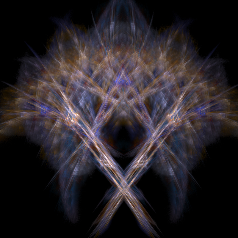Just a simple fractal that I thought looked like a sheaf of harvested grain. Or you might see one or more faces in it - I guess it depends on your imagination! This was one of my early fractal designs, in this case with very little editing. It was created with the Apophysis fractal flame creater/editor.