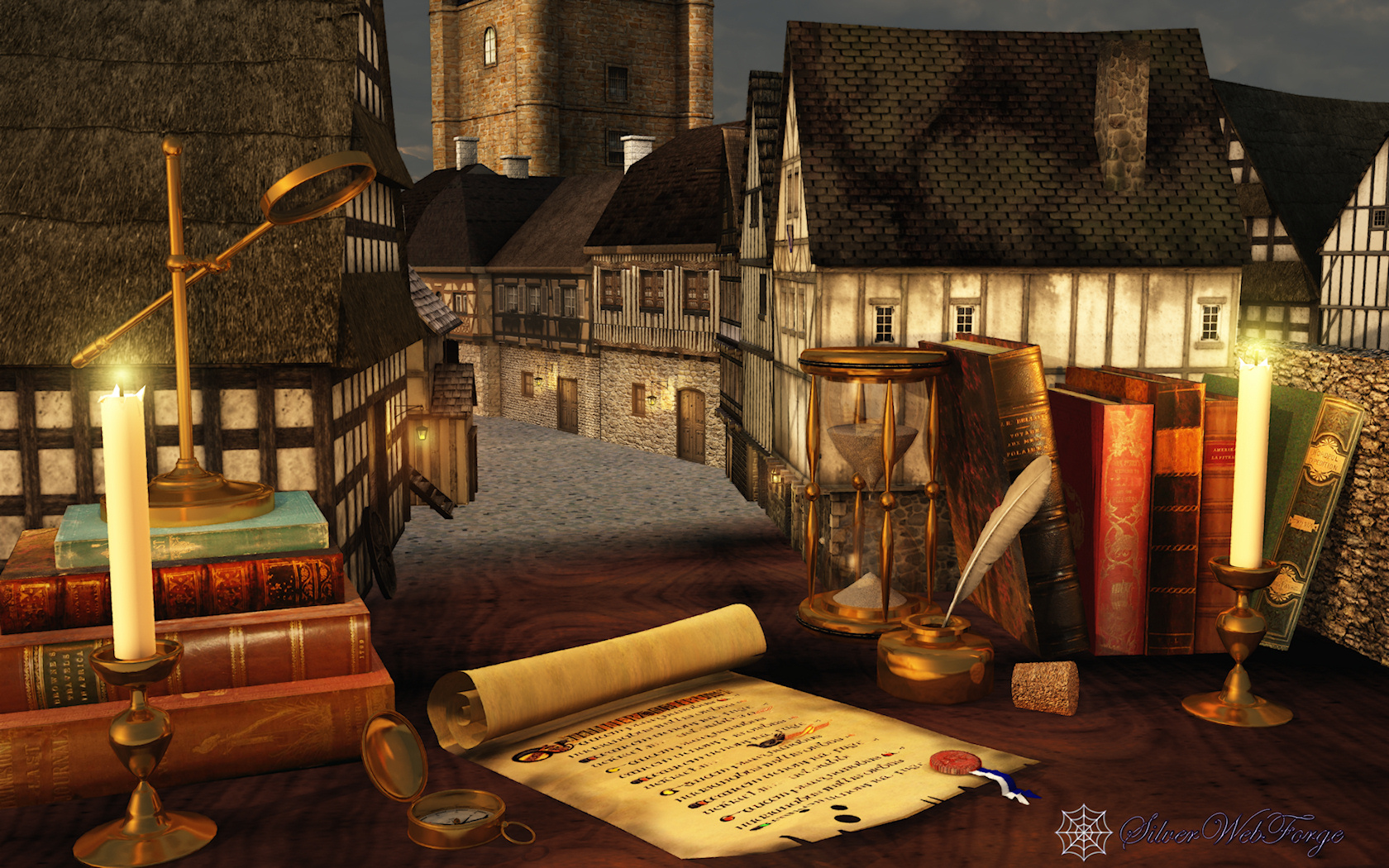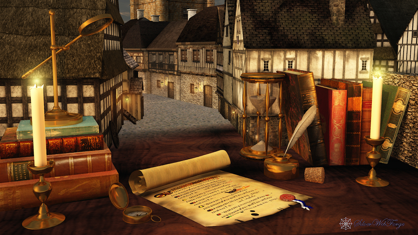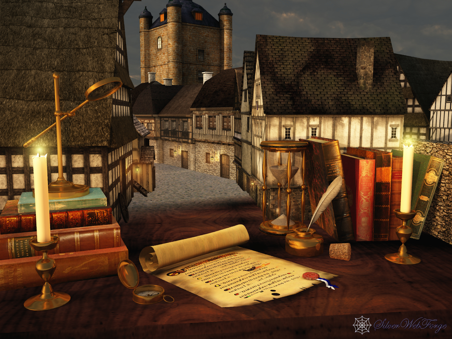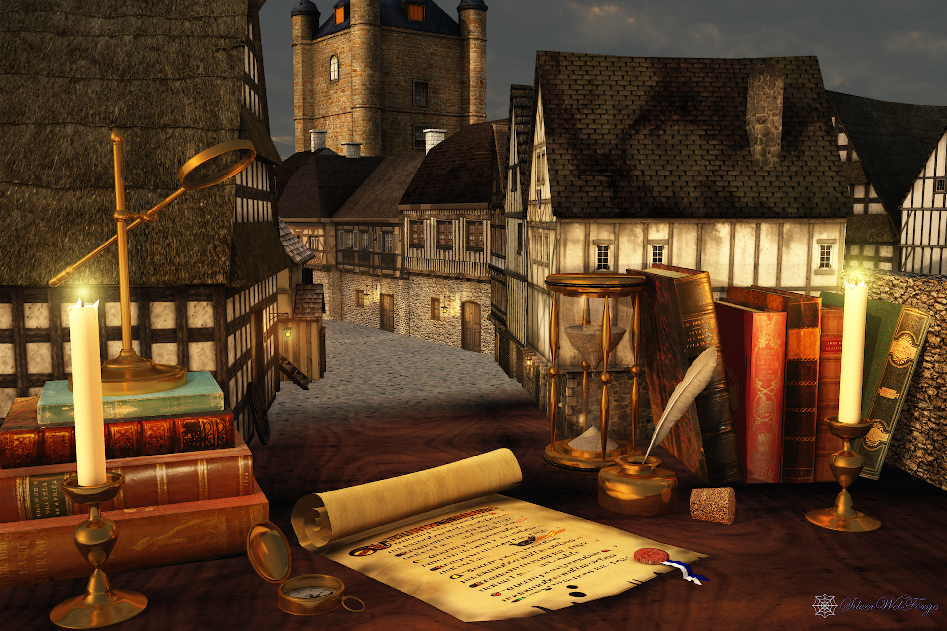 This was inspired by M.C. Escher's Still Life and Street, with a medieval twist.